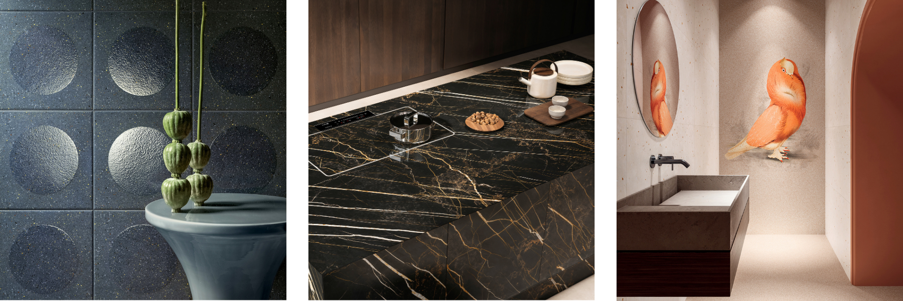 Across the pavilion, exhibitors will showcase the evolving applications of ceramic and porcelain surfaces, from integrated countertops and induction cooktops to prefabricated washbasins, vanities, dining tables, and furniture. Innovative solutions for showers, for example, highlight how tile is moving beyond a surface material to become a fully integrated design element through sophisticated drainage systems and removable trays.