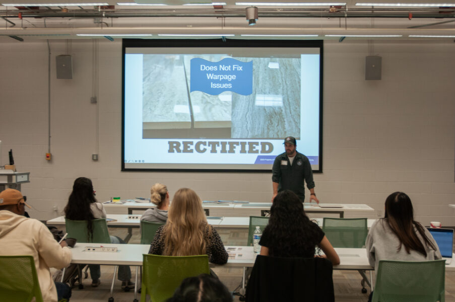 Coverings Managing Director Jamie Rich meets with the students to tell them about the upcoming Coverings show in their backyard and the many benefits of specifying tile for their projects.